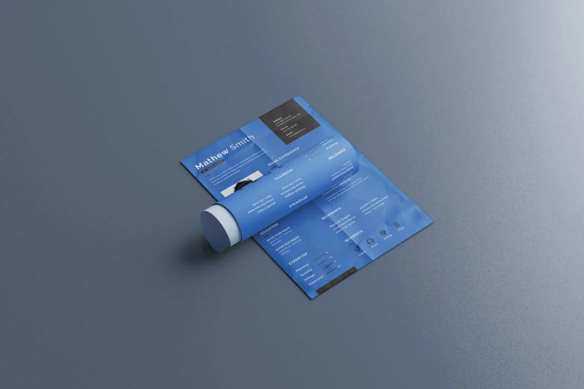 This is an A4 paper mockup featuring a Flay A4 paper and a rolled up paper. flat paper has creasing marks and the rolled up paper does not have that. You can use this for any A4 design shot such as resume, flyer, poster, cover letter etc.