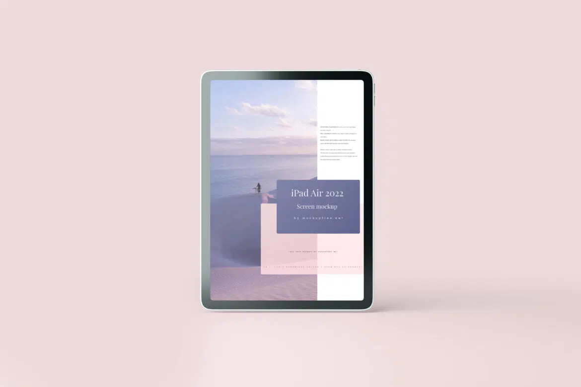 A five scenes of Apple iPad Air 2022 Mockups. five PSD files / scenes containing a iPad Air 2022.