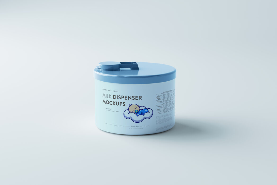 This is a baby milk dispenser jar mockup set for baby milk dispenser blister packaging display. many type of bottles comes as milk dispenser blisters but this is the most common and simplest type of bottle. includes five mockups where you can change the lid color, background color and the body design. body and the jar lid material is glossy plastic and colors can be changed to any color you want.