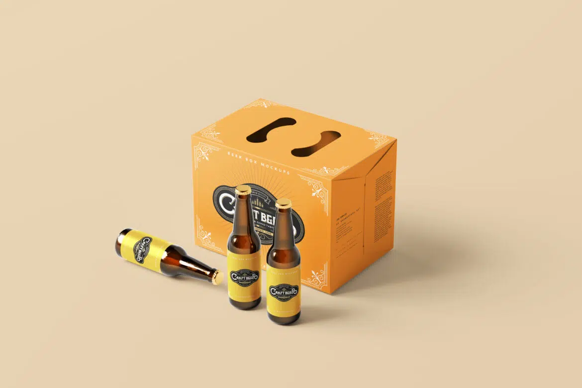 These sets include realistic 3D models of a beer box in few different angles and setup, Designers can experiment with logos, colors, and typography to create visually appealing packaging that aligns with the brand identity.