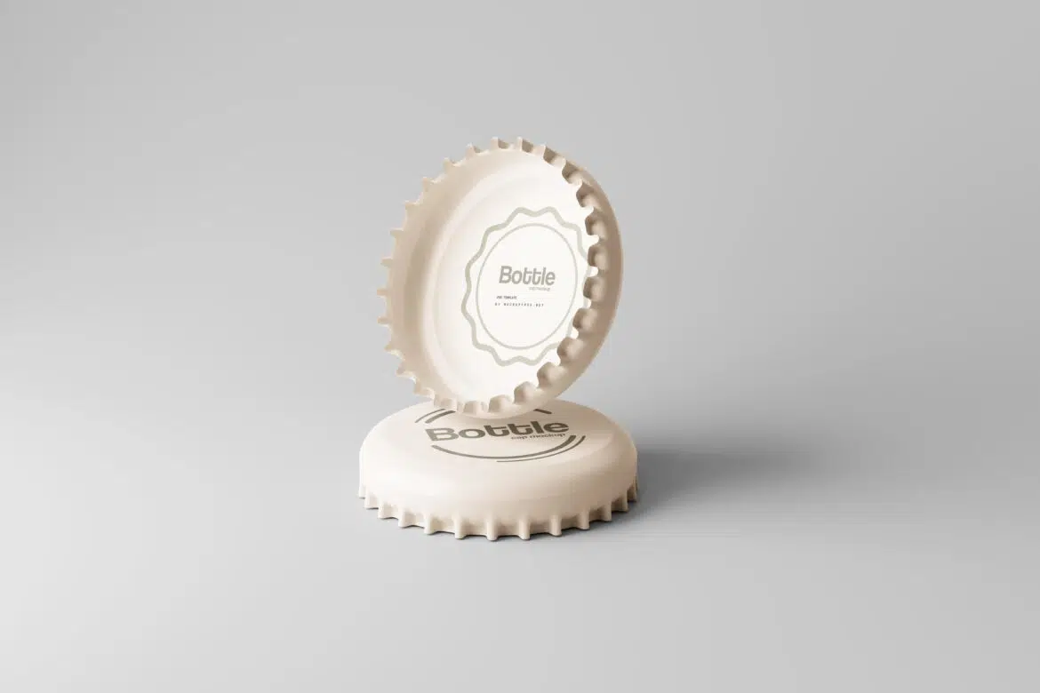 This is a bottle cap mockup set for promoting your logo, label or price winning promotion displayed on a metallic bottle cap. A cap widely used in glass beverage drink bottles like soda, beer etc. cap has a white paint on top of it and it is slightly glossy. includes five mockup scenes of the isolated bottle cap both inside and outside.