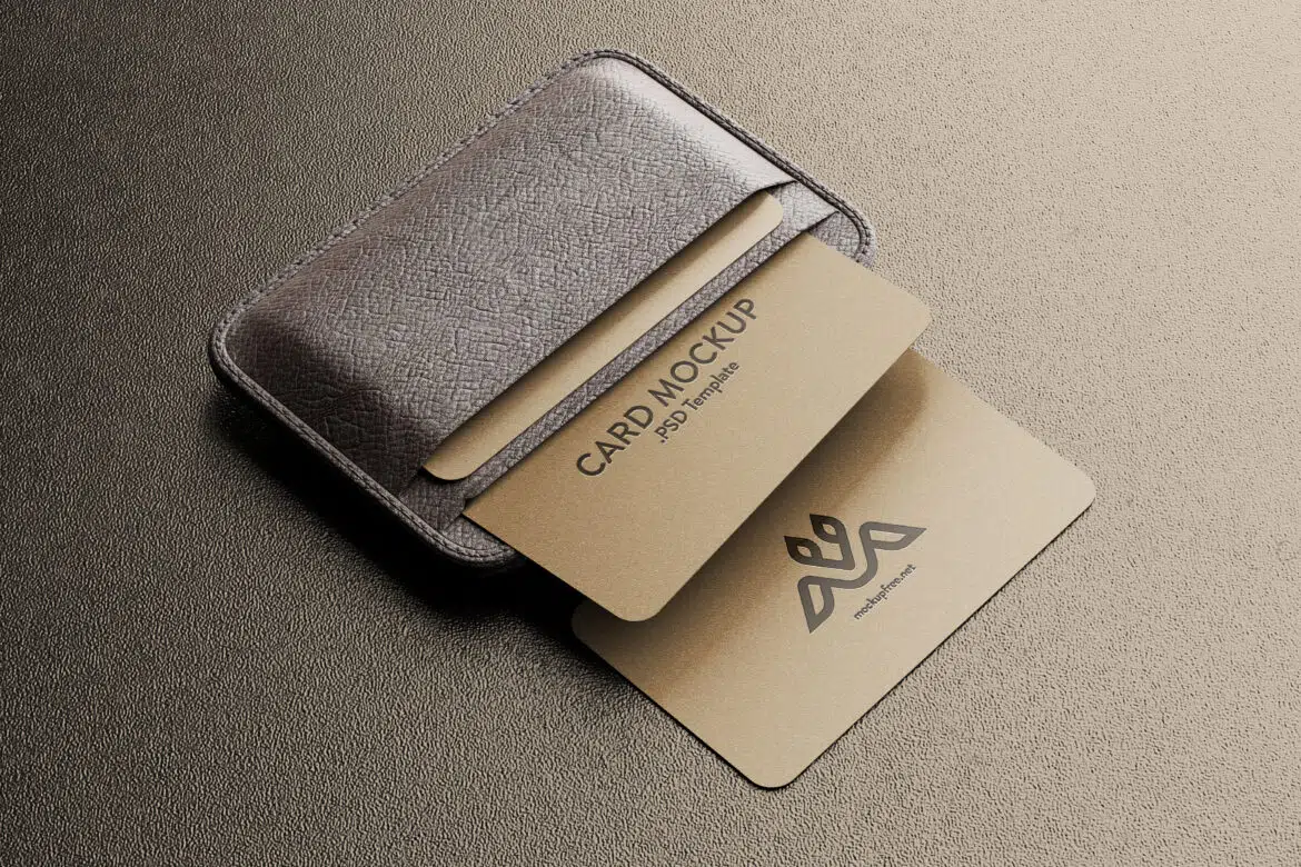 Business cards or credit cards inside a leather wallet / card holder mockups