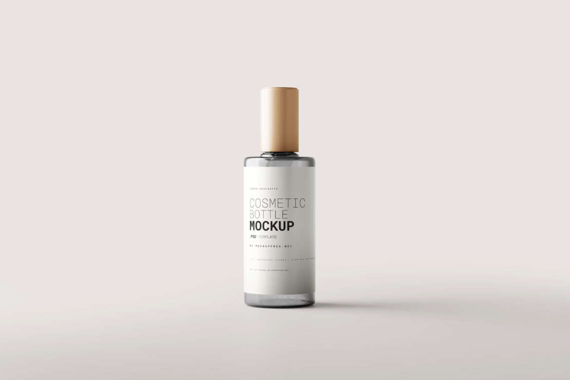 A clear glass bottle mockup for cosmetic and medicine packaging