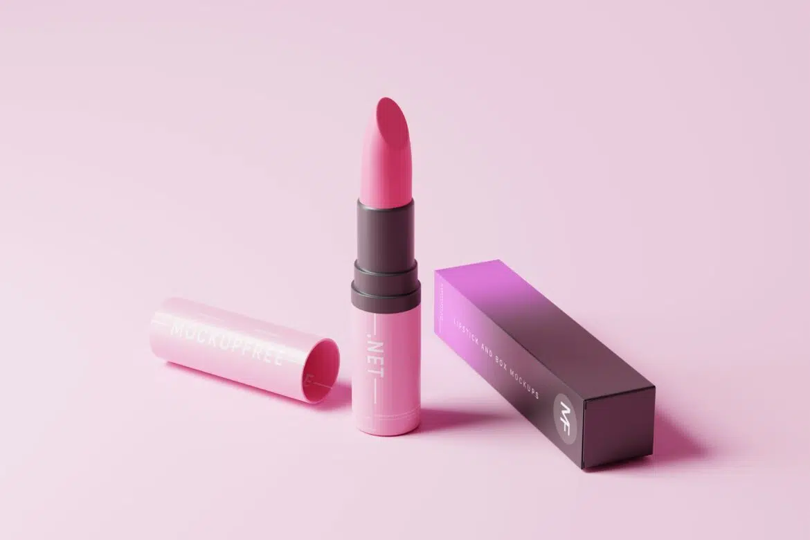 plastic cosmetic lipstick and packaging box mockups to showcase your lipstick products.