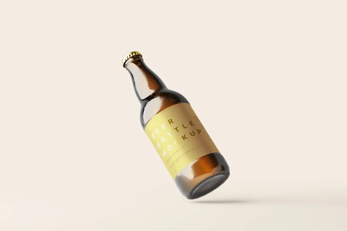 This is a set of dark amber glass beer bottle mockups featuring a very common type of amber glass beer bottle. bottle color can be altered and the cap color too. includes 10x scenes some setup in dark backgrounds and other in white backgrounds.