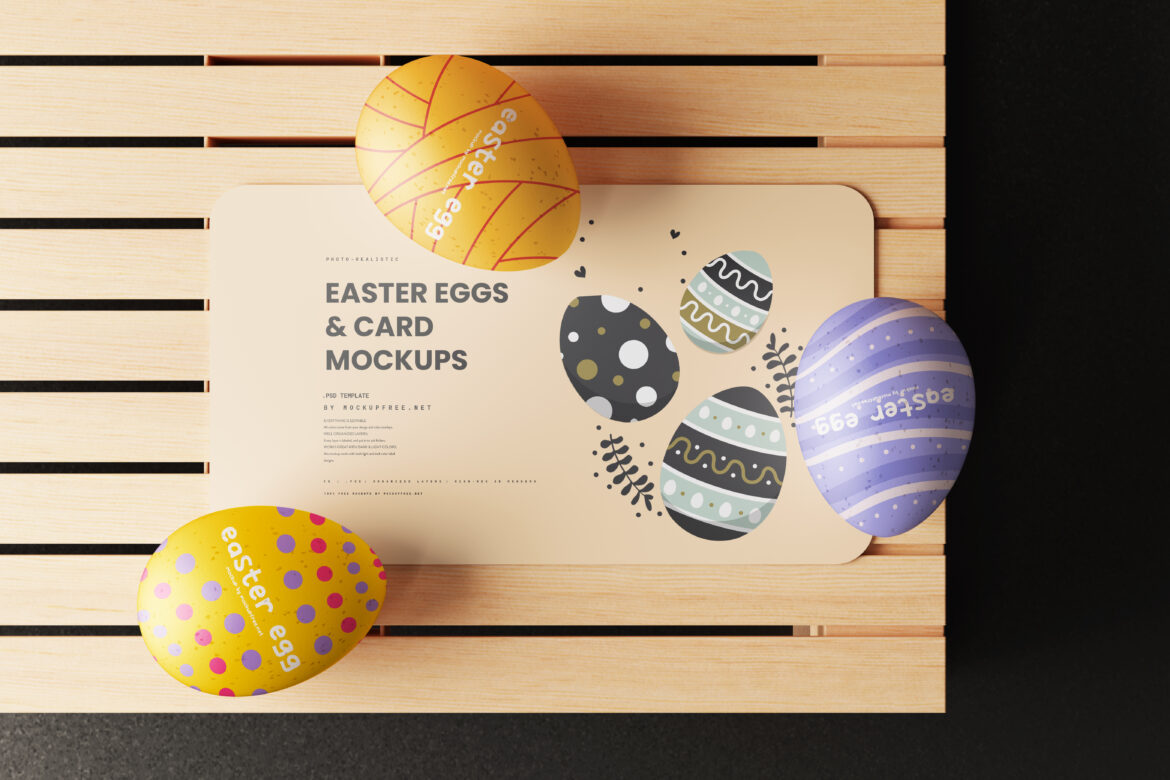 A card surrounded by Easter eggs mockup templates for your Easter themed designs.