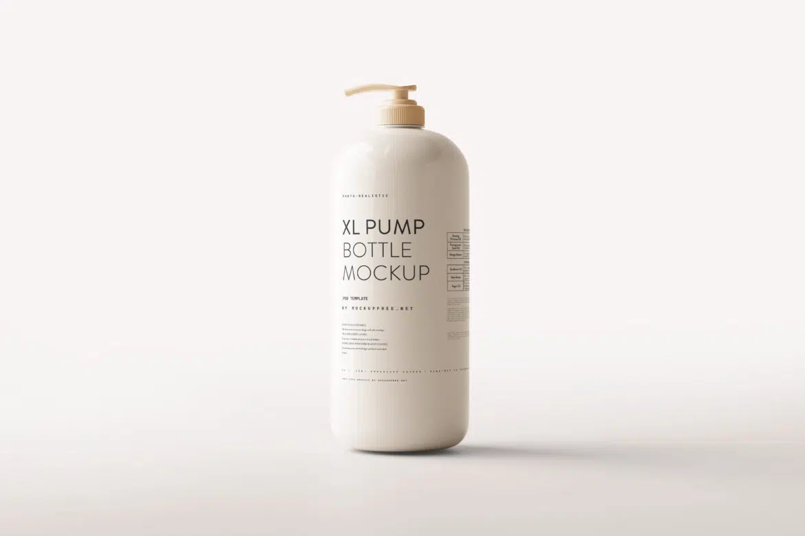 This is a large size (1L, 1.5L, 2L) pump dispenser bottle mockup set. bottle body and top part is white plastic. body is white but can apply any color. body has a glossy finish and can not alter that. your design will reflect the glossiness when applied. bottle top is also plastic and has the same properties as the body. This type of bottles are used for liquid packaging in cosmetic products. i.e cream, shampoo, lotion etc.