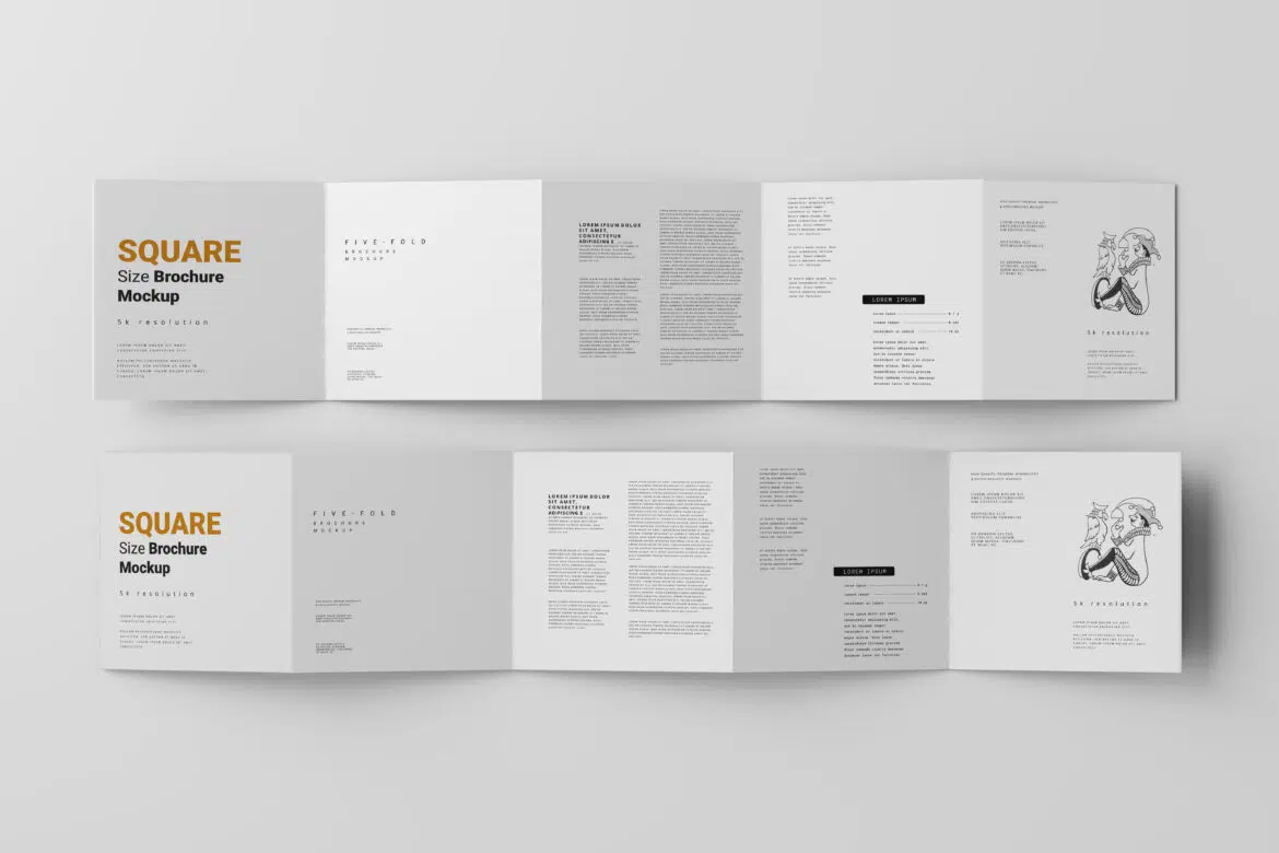 5-Fold Square Size Folded Brochure Mockups