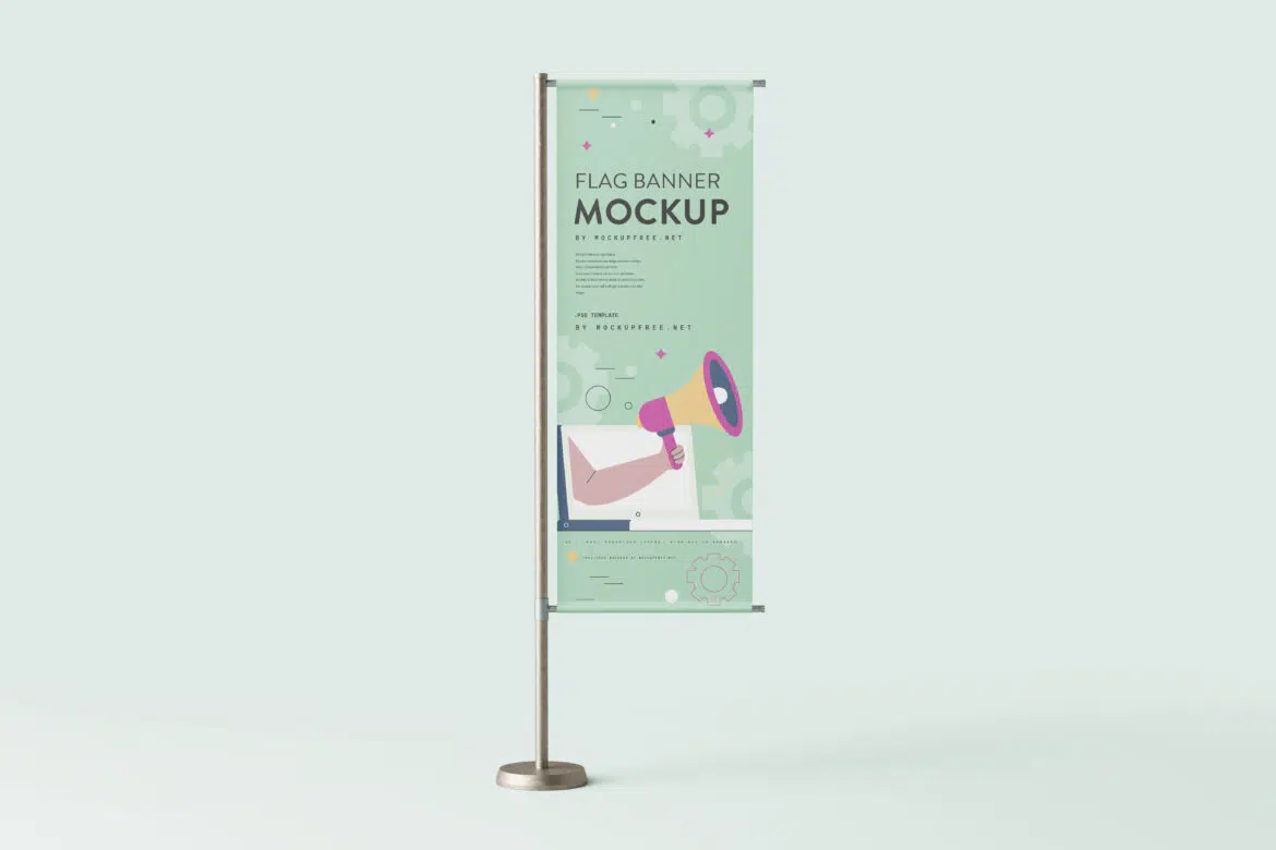 Flag shaped advertising banner mockups. these type of advertising banners are used mainly outdoors and open arias. heavy metal frame with a round shaped stand makes it withstand winds. outdoor flag banners can be seen in front of shops, exhibitions and in sport events.