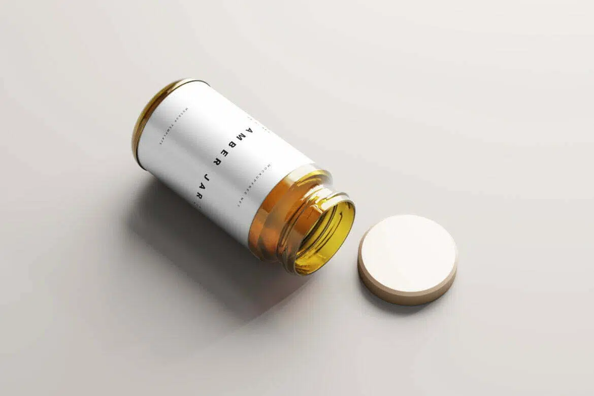 A large size amber jar mockups for product packaging designs and product showcase. contains five unique jar mockups.