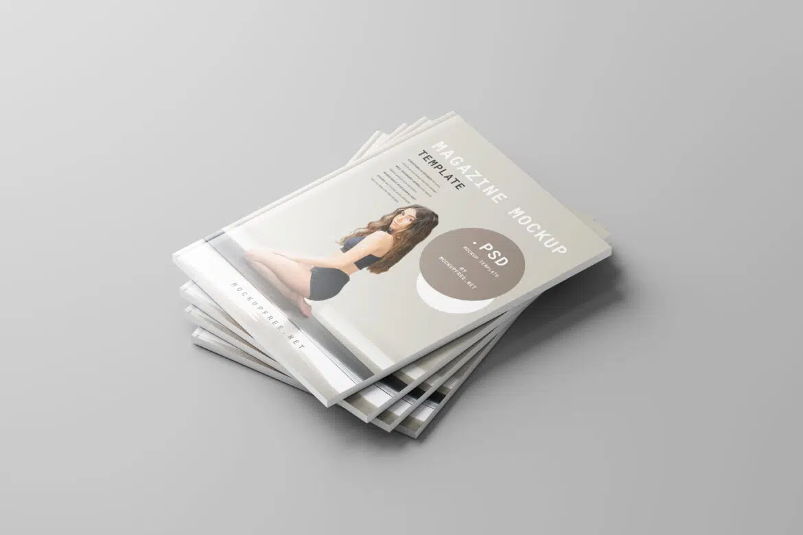 Five magazine cover mockups for showcasing your magazine cover designs. minimal design yet photo-realistic mockups.