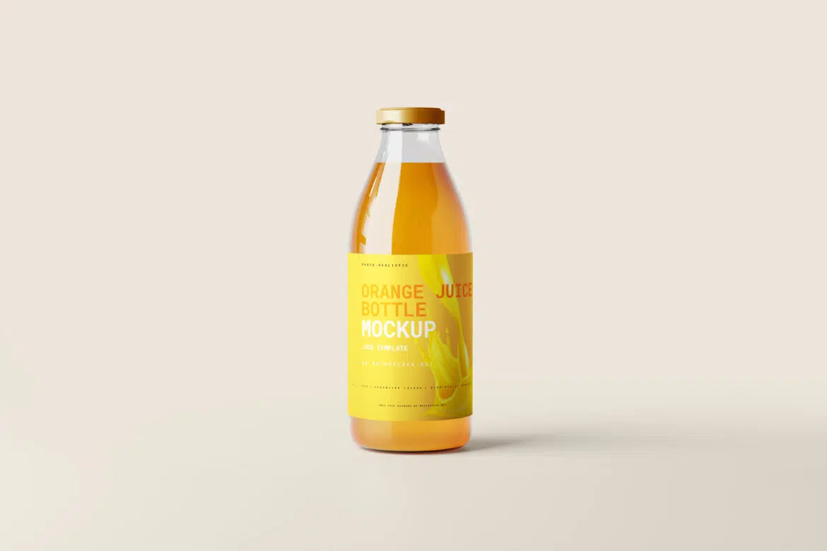 This is a orange color bottle mockup set for orange juice or other type of beverage product packaging mockups. originally rendered in orange color but you can apply any other color to the liquid with the given hue/saturation adjustments.