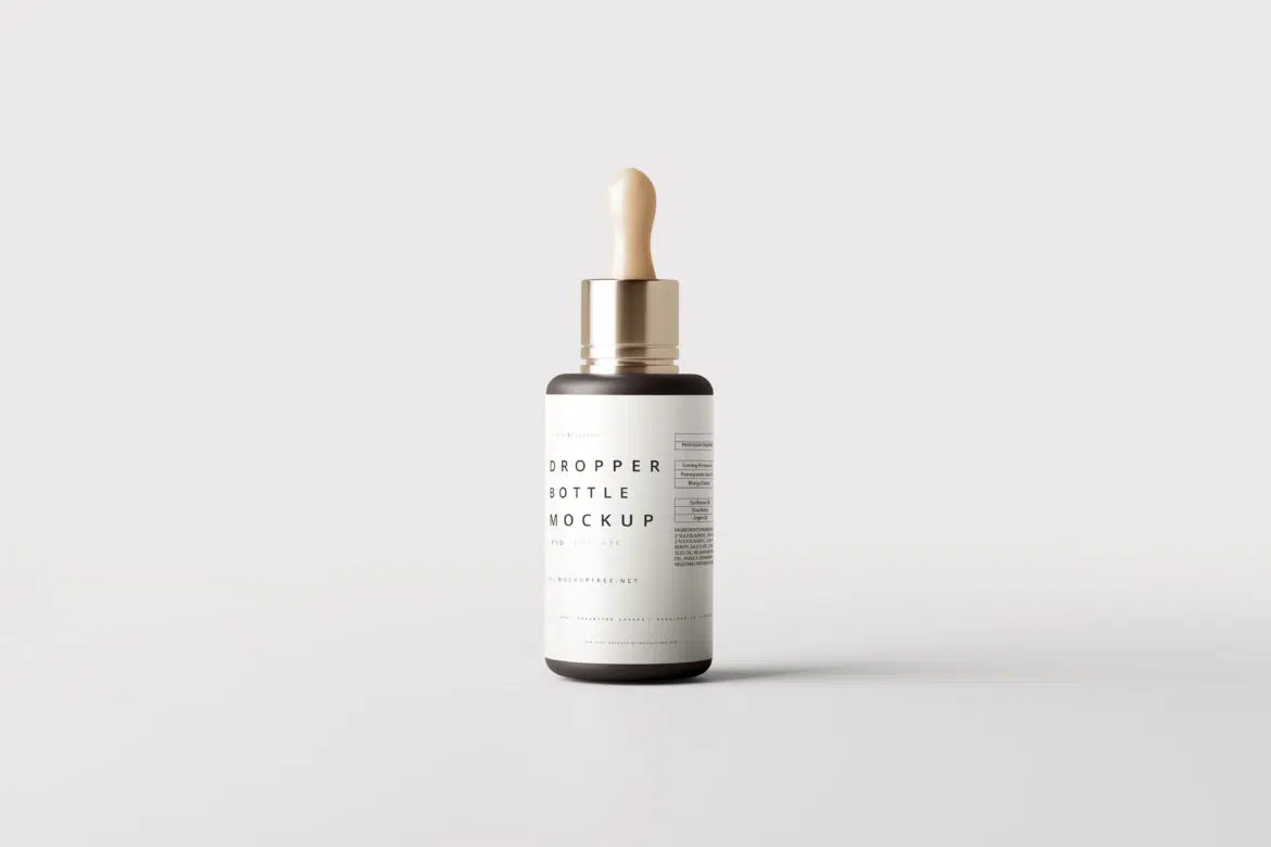 Dark Plastic Body, Metal Closure Dropper Bottle Mockups Free