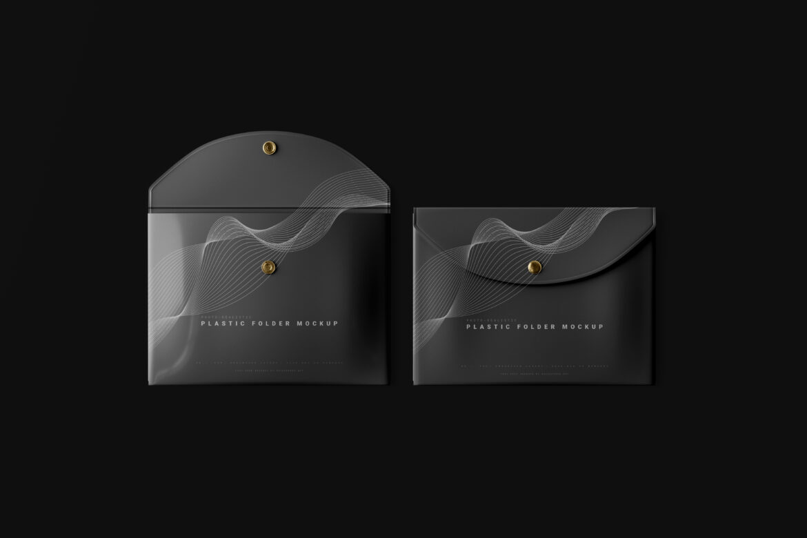 This is a set of plastic folder mockups. folders look a lot like an envelope but it is made out of plastic and more durable looking. rendered with a plastic material and has a plastic texture. you can mockup your design or logo on to this to showcase your branding.