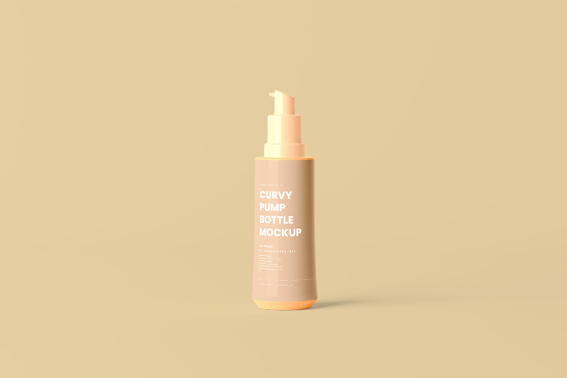 A very small curvy pump bottle mockups for cosmetic product mockups. bottle is made out of plastic and has a curvy body.
