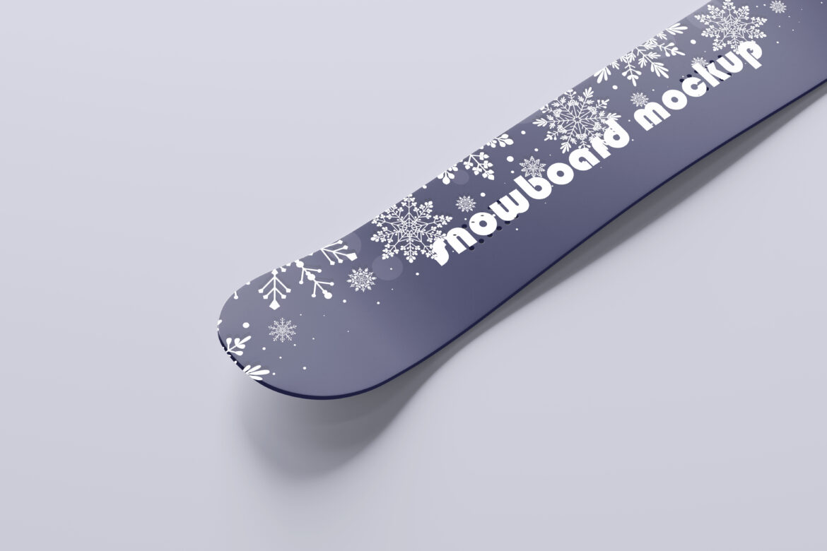 The mockup template features a high-quality 3D model of a snowboard that is placed against a few backgrounds. The snowboard is presented from a three-quarter view, which makes it easy to see the design from different angles. The mockup is designed to be easy to use, with smart objects that allow users to simply drag and drop their designs into the mockup.