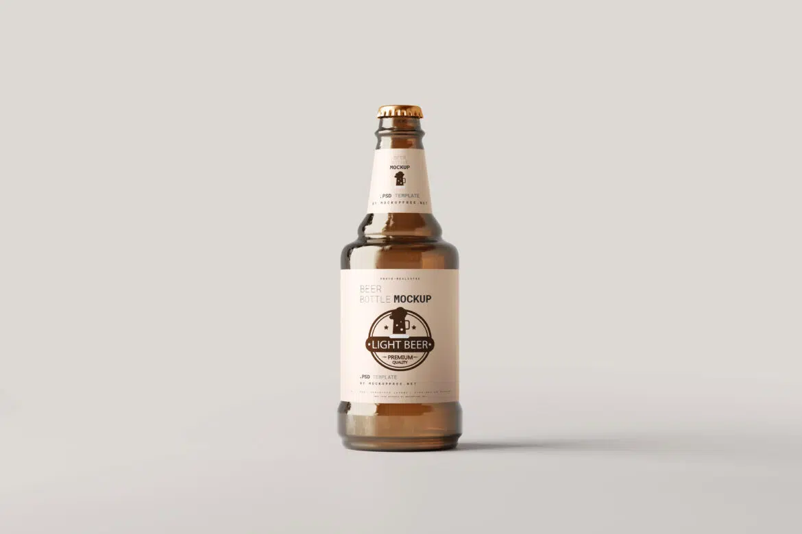 This is a amber glass beer bottle mockup set with highly detailed 3D renderings. Like all bottle mockups in mockupfree.net you can use transparent labels, change bottle color, change cap color as well as the background color. background can also be textured or add your own background easily because the background is a separate layer and can be disabled.