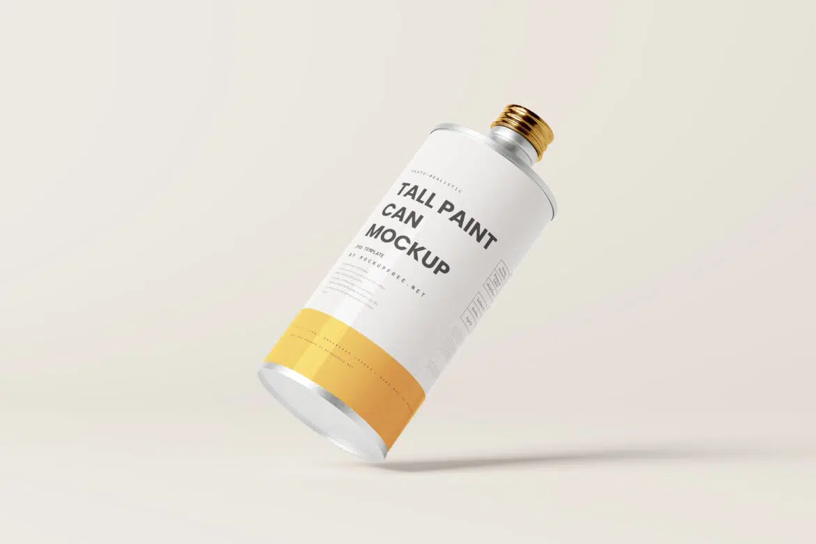 A tall paint can with screw cap mockup set which allows you to visualize and showcase your designs on a cylindrical paint can with a screw cap. show your packaging designs in a professional and realistic way to your customers and clients.