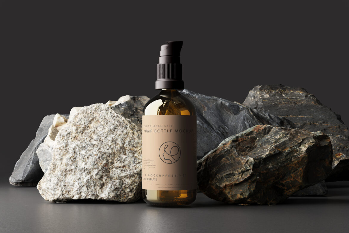 Five mockups showcasing the bottle in different setup. great for cosmetic product shots as well as label design showcasing.