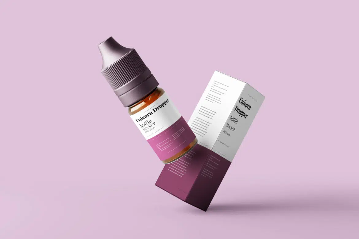 Unicorn Dropper Bottle and Box Mockup Scenes