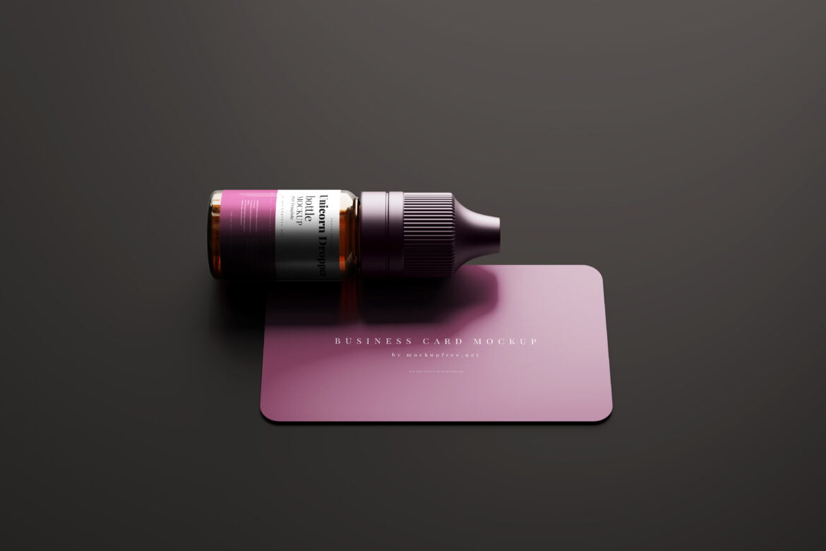 Unicorn Dropper Bottle on top of a Business Card Mockup Scene