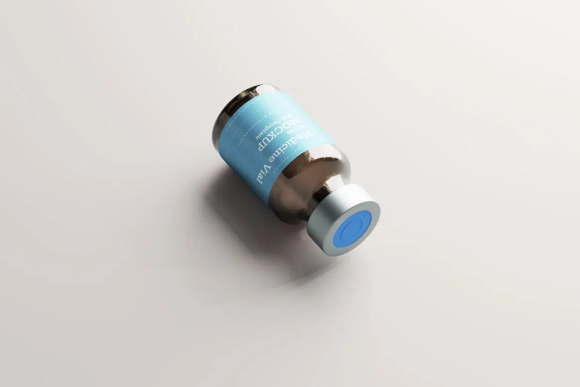 Medicine or Vaccine Vial Bottle Mockups, contains three individual scenes to mockup tour labels, originally rendered with dark amber color but the bottle color can be any color you want.